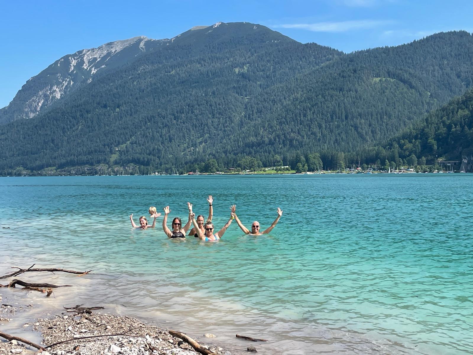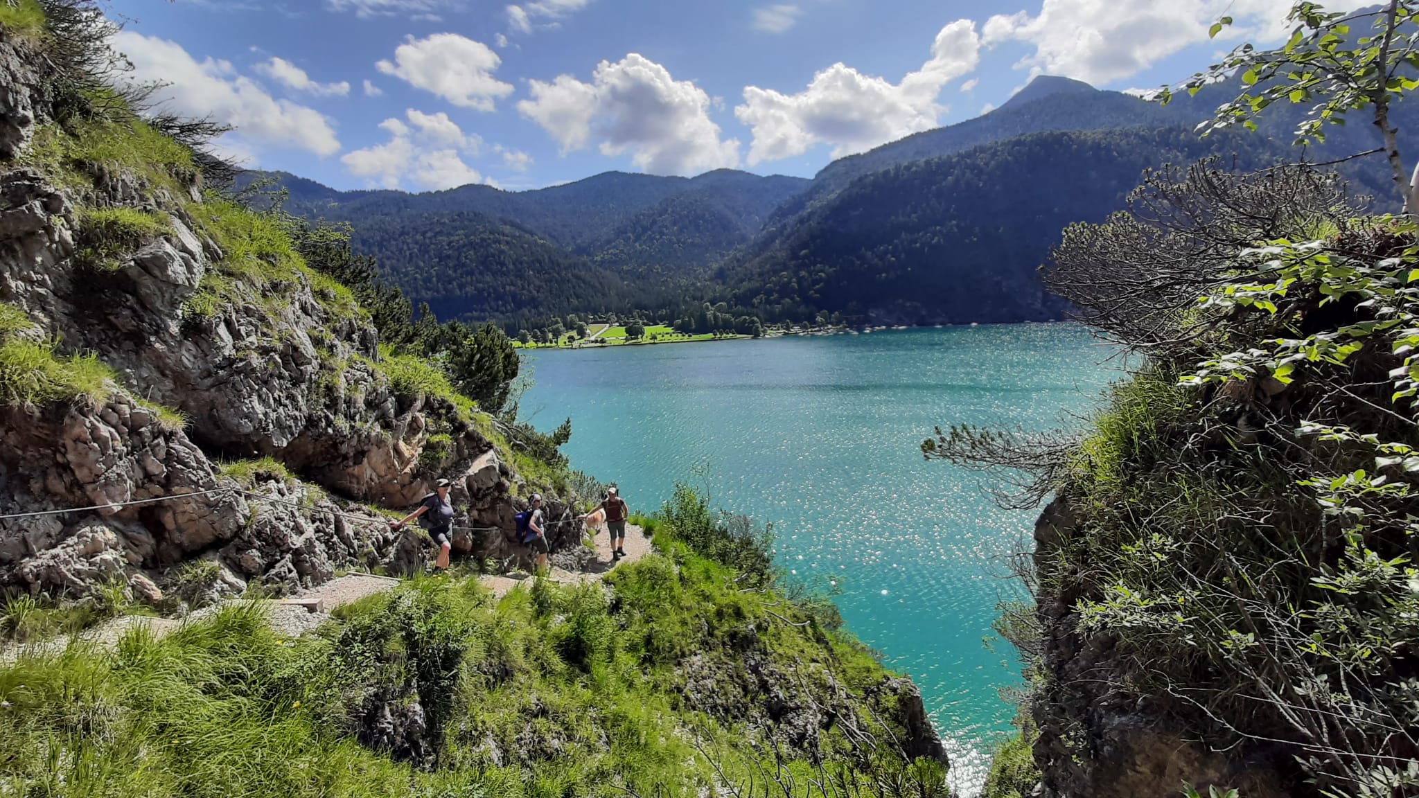 Mit dem örtlichen Bus fahren wir nach Achenkirch. Der Gaisalmsteig gilt zu Recht als einer der schönsten Wanderwege in Tirol. Immer entlang am Ufer des Achensees wandern wir zur Gaisalm und weiter nach Pertisau. Der Weg ist zeitweise etwas schmäler und ab und an sind Seile zur Sicherung angebracht. An Pertisau vorbei geht’s weiter nach Maurach immer am See entlang. Von hier Transfer mit dem Taxi zu unserer Unterkunft in Fügen im Zillertal (Gästehaus mit Anbindung an Hotel****), unserem heutigen Etappenziel.