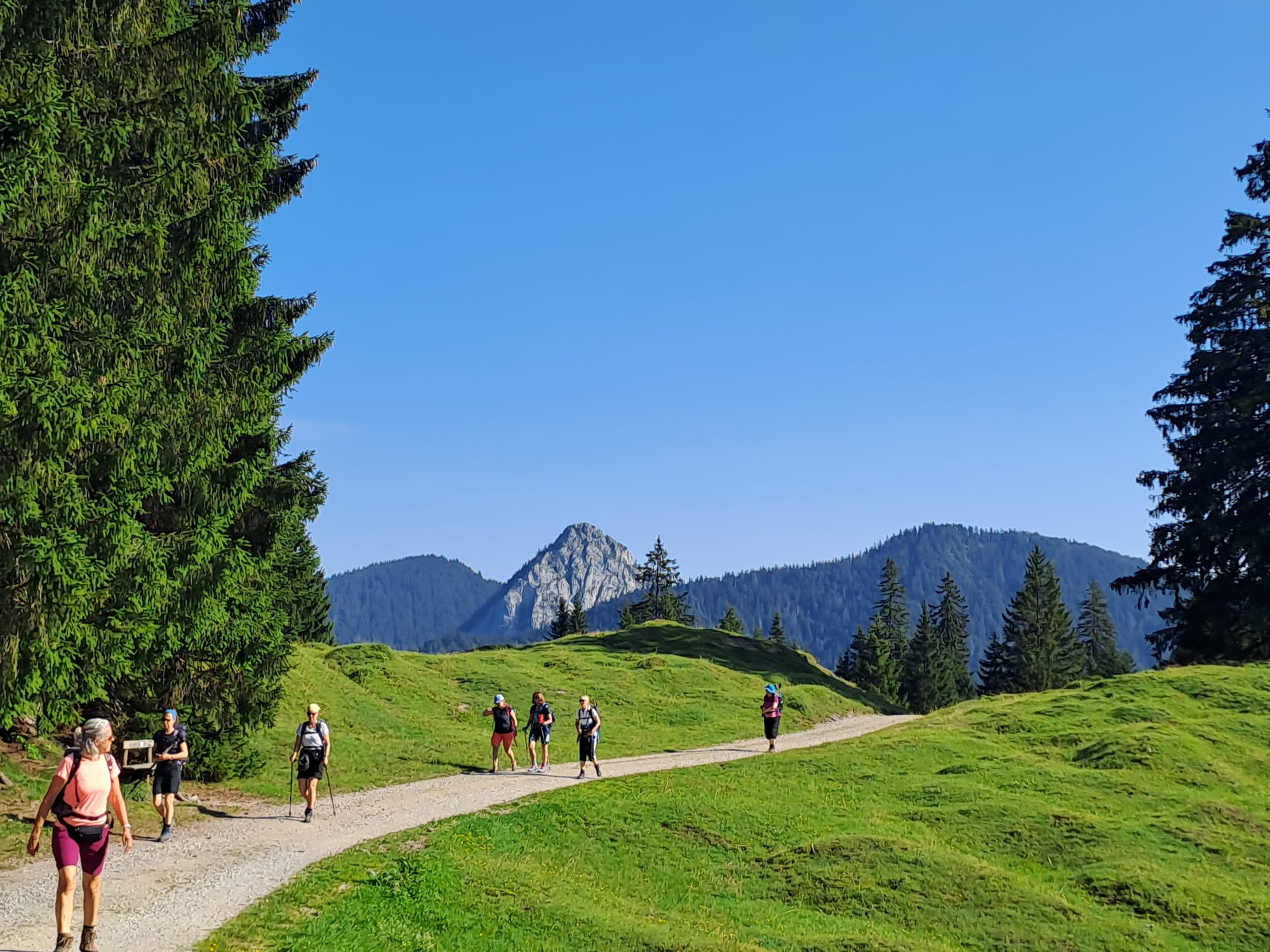 Mit dem Bergsteigerbus fahren wir nach Wildbad Kreuth wo wir unsere Wanderung beginnen. Ein schöner Steig bringt uns zur Königsalm und weiter zur Grenze nach Tirol. Über die Blaubergalm geht es über Wald- und Wiesengelände hinab nach Achenwald. Von dort werden wir wieder die öffentlichen Verkehrsmittel benutzen und weiter zu unserer Unterkunft (Gasthof / Hotel) in Achenkirch fahren. Je nachdem wie oft wir pausieren wollen