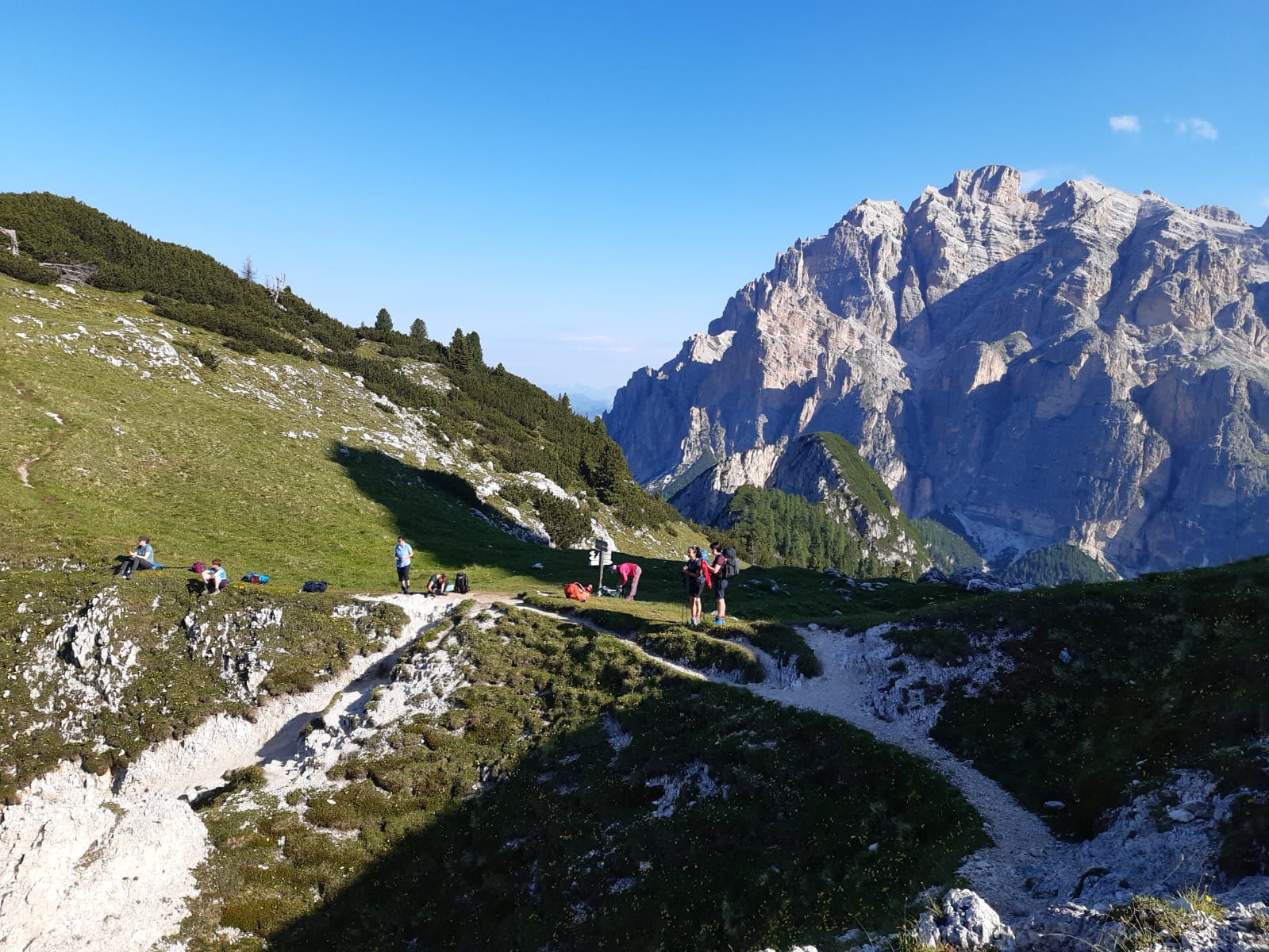 Heute geht es an den längsten Aufstieg der Woche. Die Tour führt uns zur prominent gelegenen Lagazoui-Hütte (2752m) auf dem Gipfel des Lagazoui die höchste Übernachtung auf unserer Tour. Gemütlich geht es zunächst über das Limojoch hinüber zur Fanesalm. Weiter geht es vorbei am Lago di Lagazoui und nun stetig