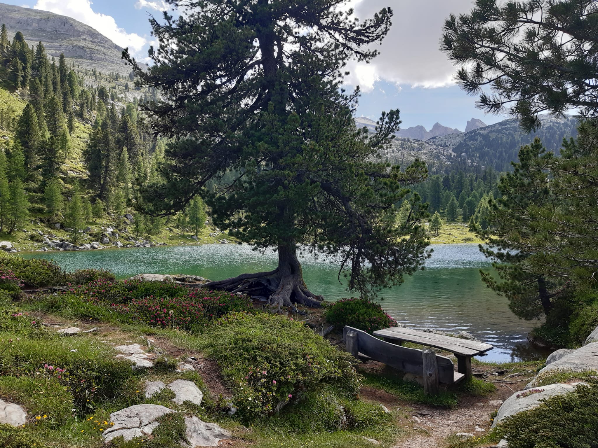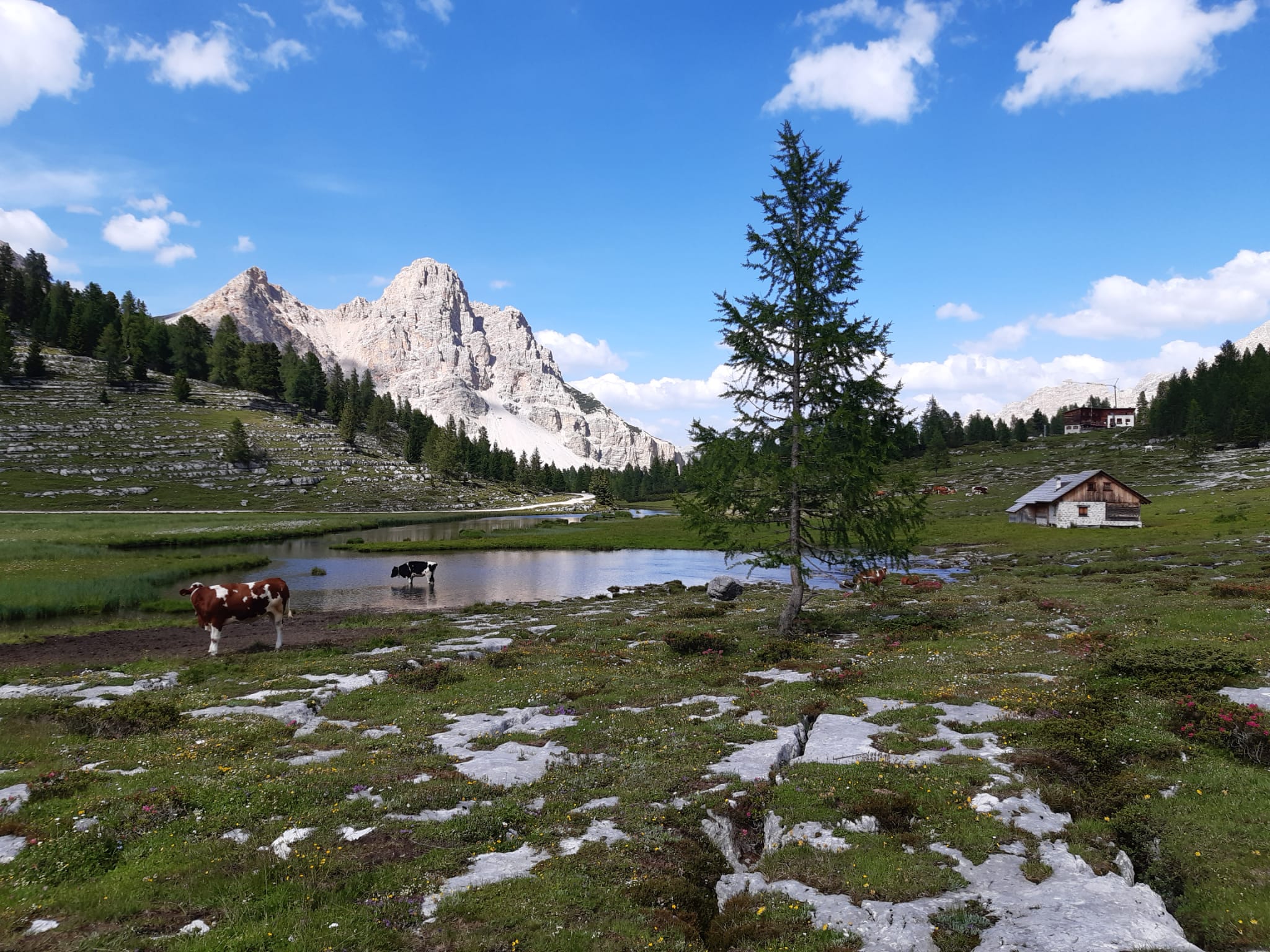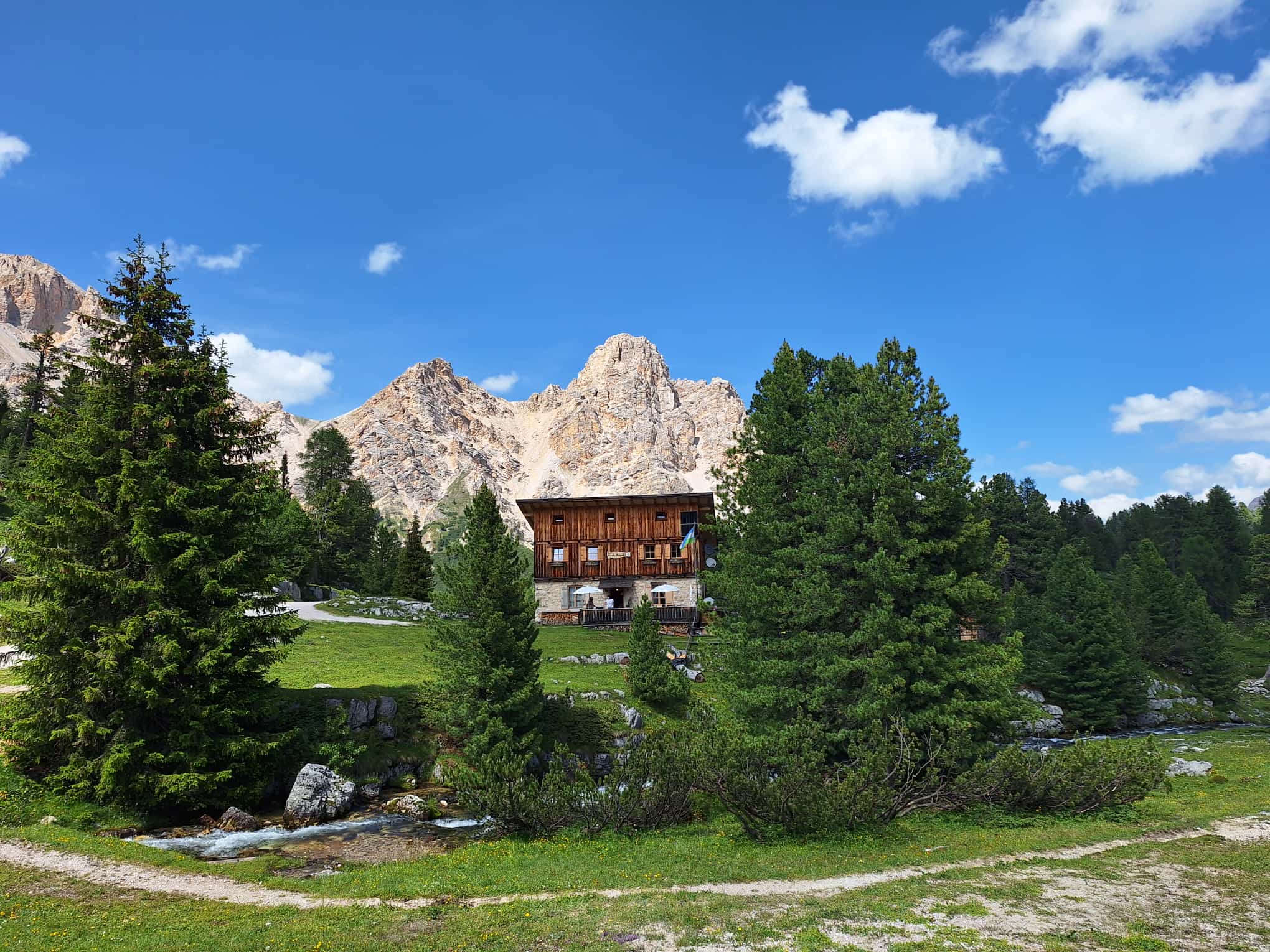 uns an den letzten Aufstieg des heutigen Tages. Ein leichter Bergweg bringt uns mitten hinein in die Fanesgruppe. Die Lavarellohütte (2.050m), idyllische zwischen Wiesen und lichten Wäldern gelegen, ist unser heutiges Tagesziel.