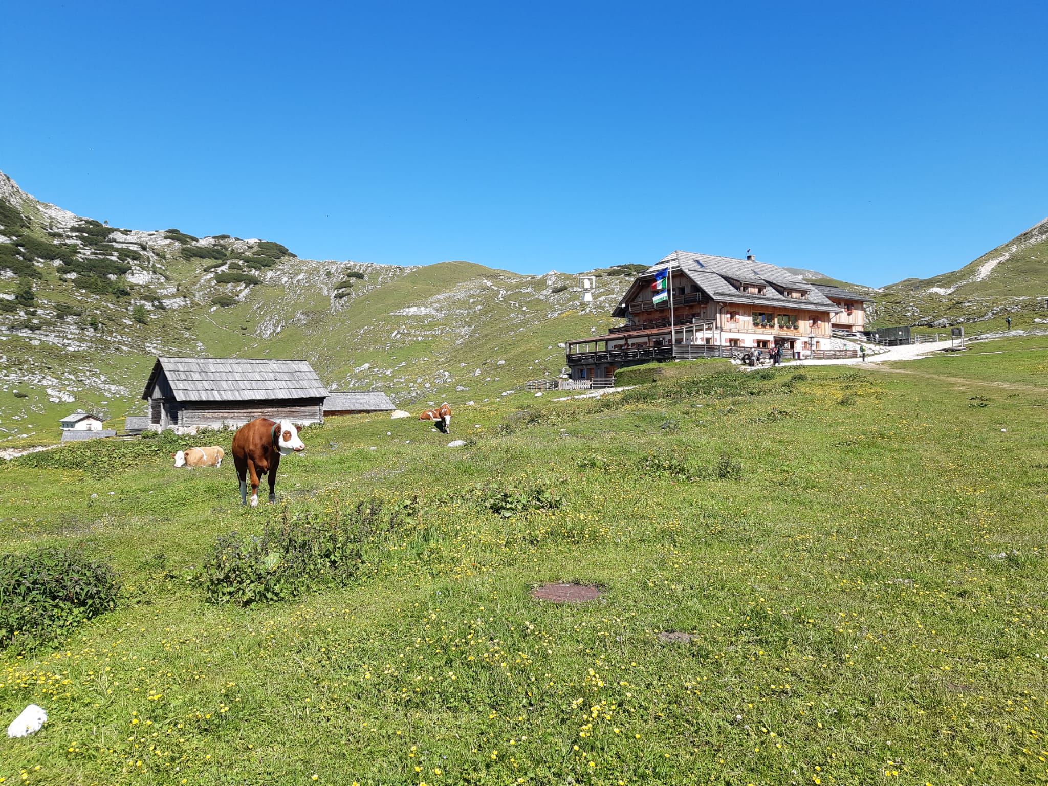 Seilversicherung) steigen wir zur die Ofenscharte, kehren auf der Seekofelhütte ein und machen uns dann auf den Weg zu unserer Unterkunft über das Sennesplateau zum Rifugio Sennes (2.126m), wo wir übernachten.