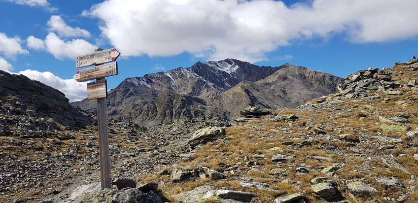 Mit öffentlichen Verkehrsmitteln geht es zur Talstation eines kleinen Sessellifts und mit diesem zur Tarscher Alm (1940m). Aufstieg zum Tarscher Pass (2530m) mit grandiosem Fernblick zur Ortlergruppe und den Dolomiten. Wanderung bergab zur Kuppelwieser Alm mit gemütlicher Mittagseinkehr. Kurzer Aufstieg und Höhenweg zur Schwemmalmbahn. Talfahrt und Übernachtung im Ultental.