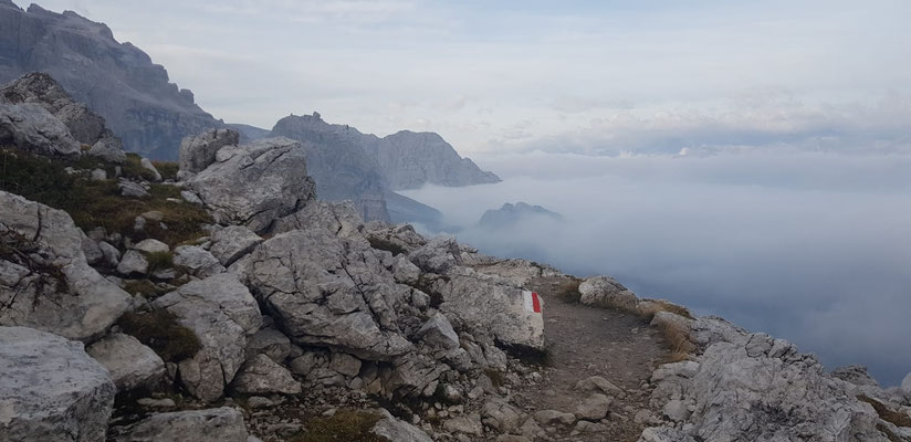 Die Durchquerung der Brenta Dolomiten beginnt zuerst mit dem Aufstieg durch das wunderschöne grüne Val di S. Maria di Flavona zur Malga Flavona, wo wir kalte und warme Getränke geniessen können. Anschließend weiter bergauf über eine kleine Hochebene und weiter bereits oberhalb der Baumgrenze auf schmalen Wegen vorbei an schroffen Gipfeln zum Passo del Groste (2442m). Kurz bergab zum Rifugio Graffer (2261m), unserem heutigen Tagesziel.